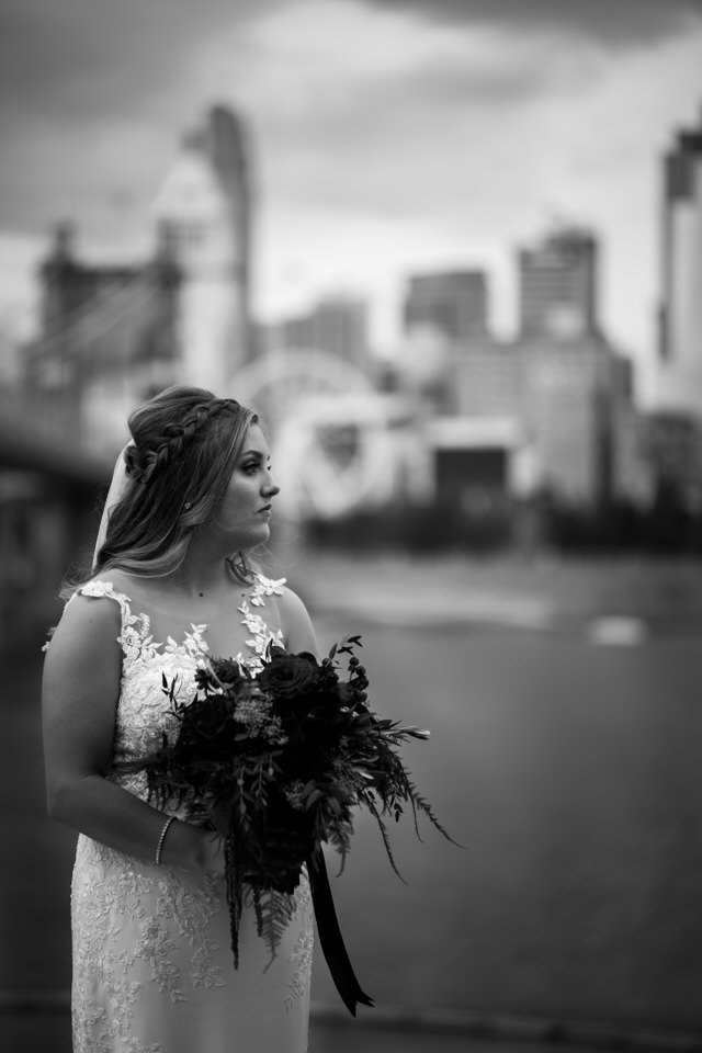 The Ceremony was held at The Loft in The Madison Event Center in Covington. Getting ready took place at Hotel Covington, and we had the opportunity for some beautiful portraits at the Roebling Bridge.